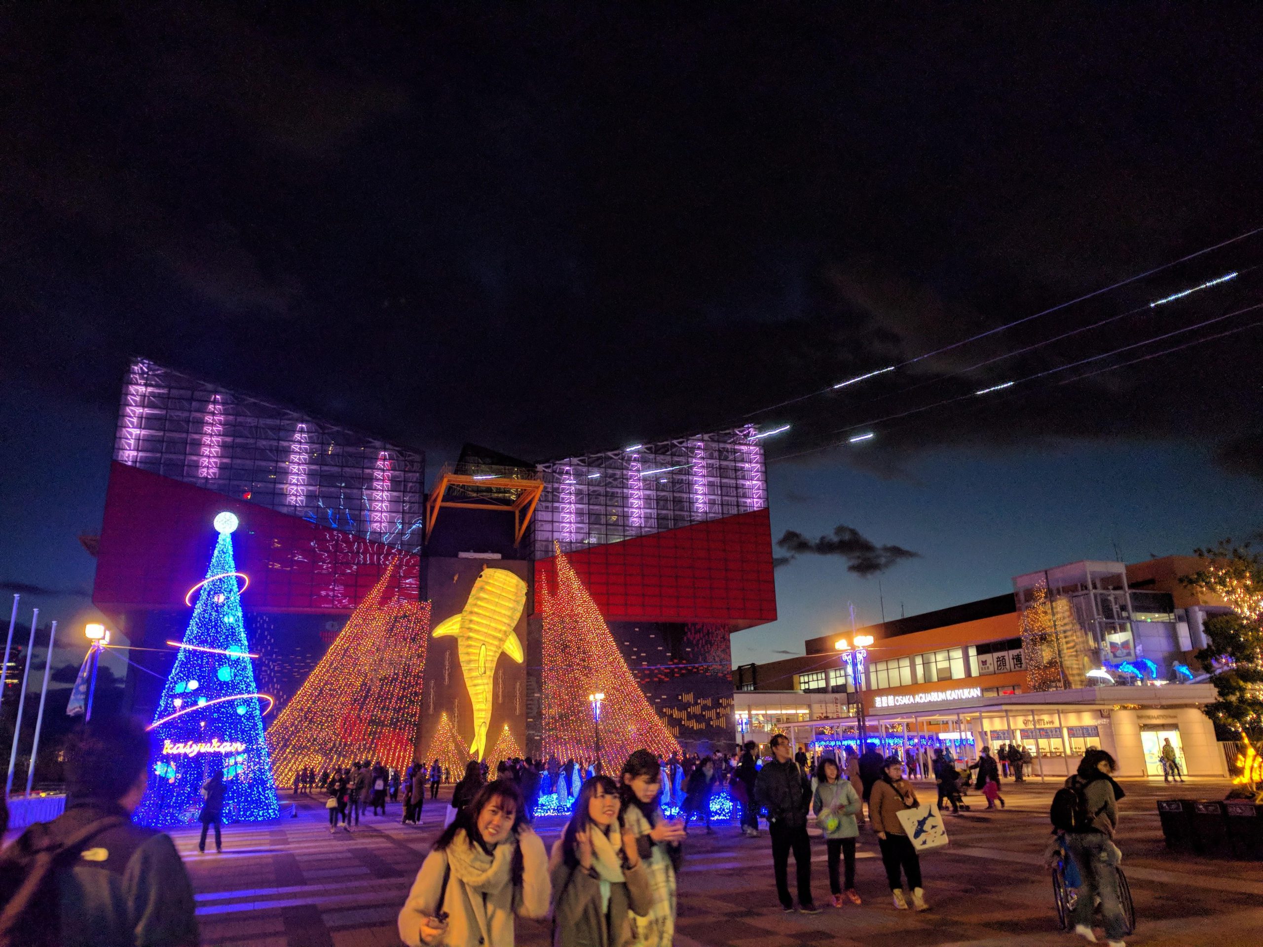 前日泊となったのはシーガルてんぽーざん大阪。海遊館のすぐとなりにあるホテルです。夕食は買い出しに出たのですが、たまたま海遊館の前がイルミネーションで飾られていて、とても美しい夜景になっていました。