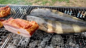 恒例、「河原で肉(+魚、貝)を焼いて食らう会」です。