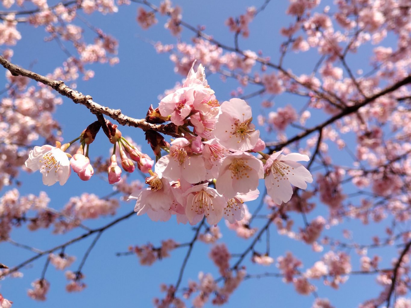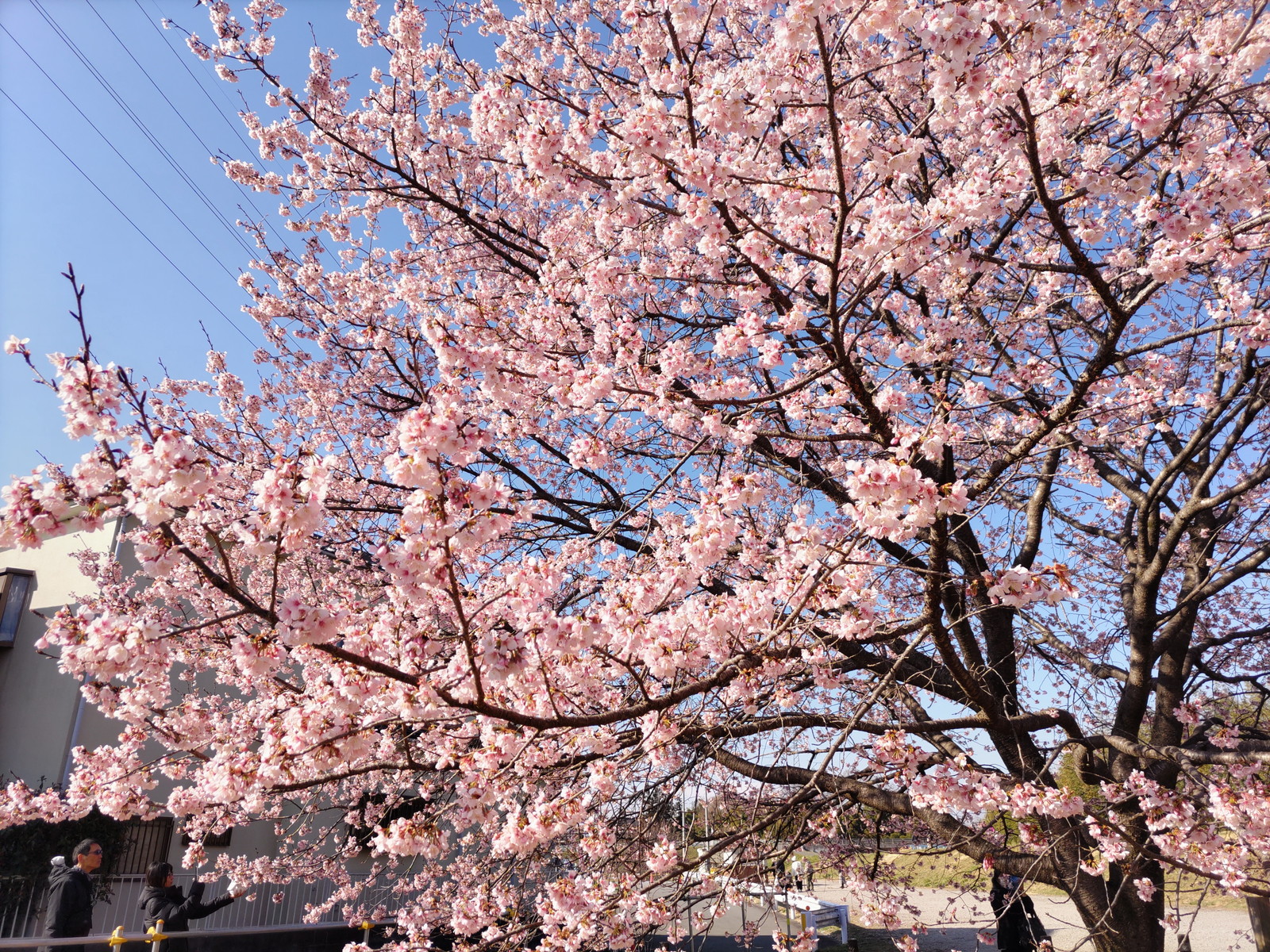この桜は寒桜で、一般的な桜より半月くらい早く咲きます。